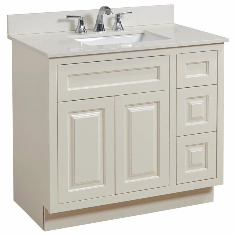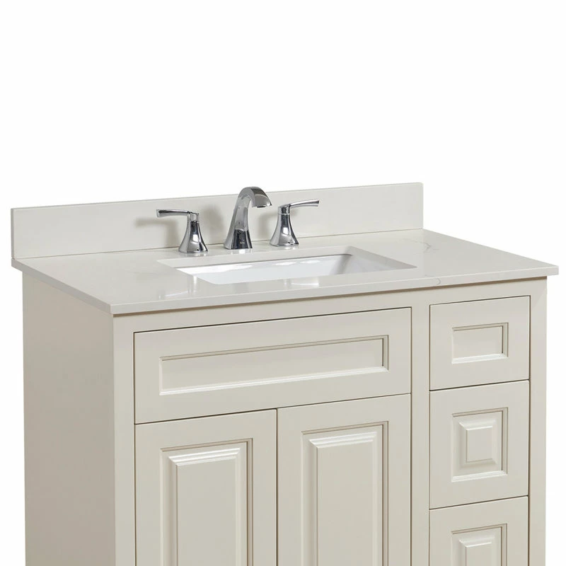 - Fits a standard 36 in. W x 21 in. D vanity cabinet