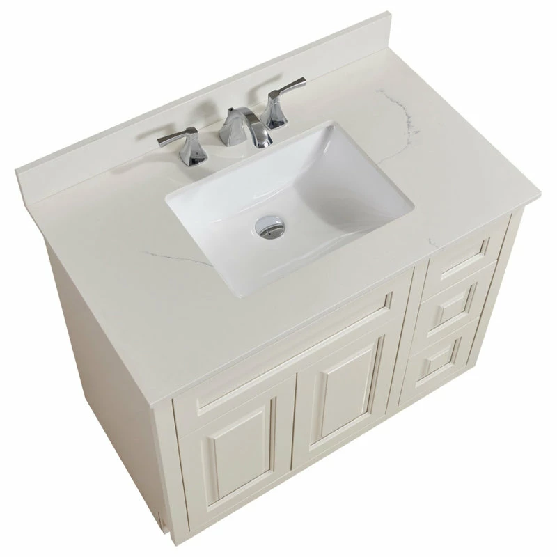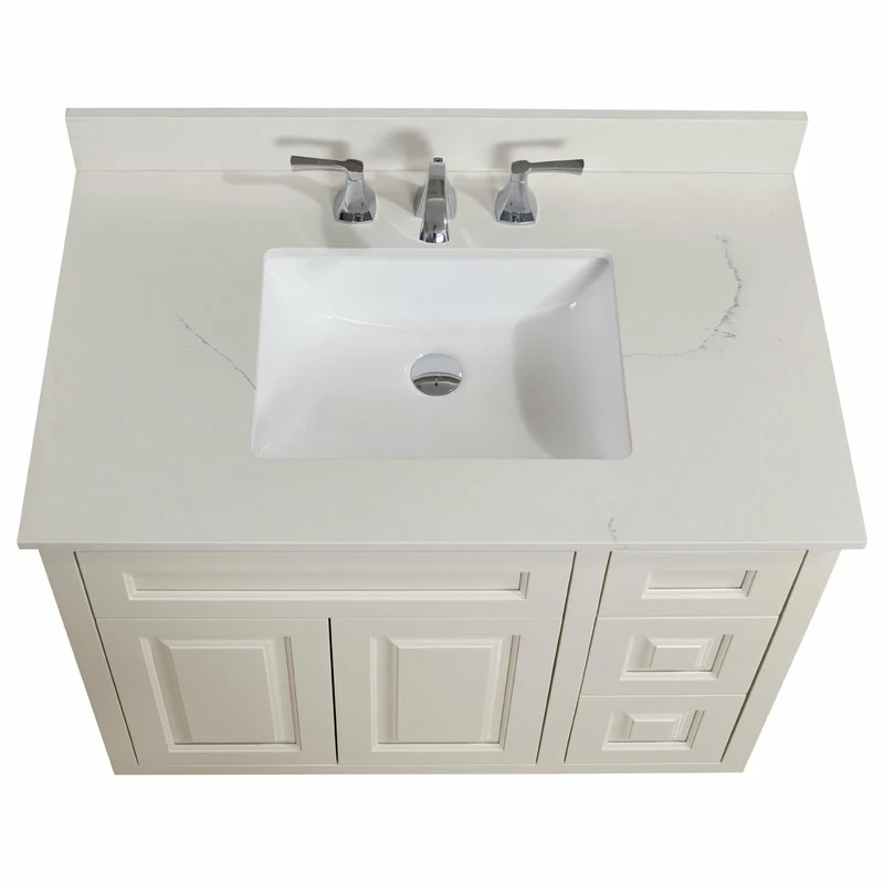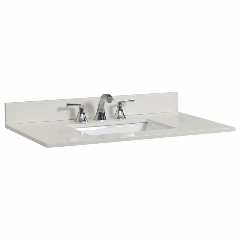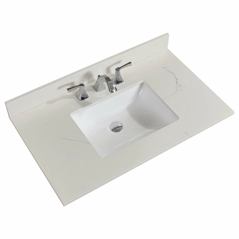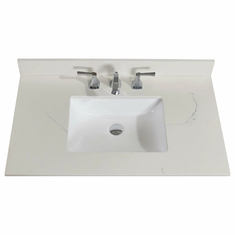 Stunning, refined engineered stone vanity top with undermount sink. Easy to install and perfect for bathroom remodel. It’s simple beauty brighttens and compliments any bathroom decor.