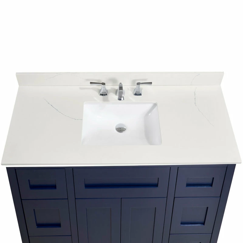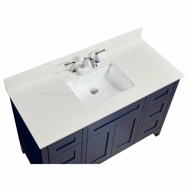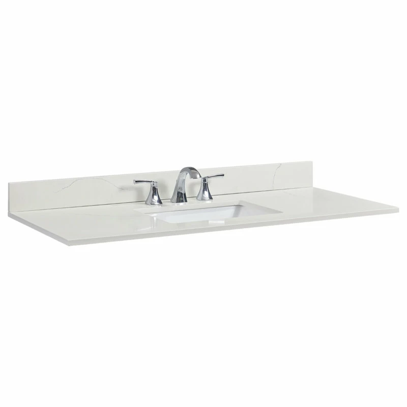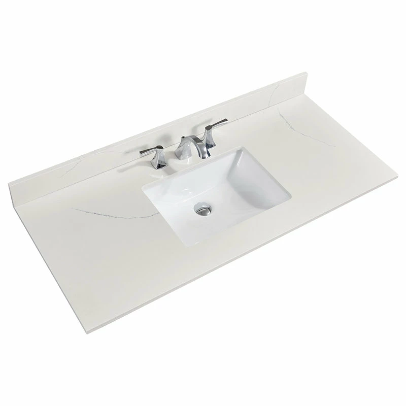 Stunning, refined engineered stone vanity top with undermount sink. Easy to install and perfect for bathroom remodel. It’s simple beauty brighttens and compliments any bathroom decor.