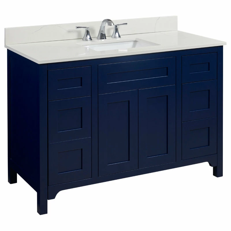 - Fits a standard 48 in. W x 21 in. D vanity cabinet