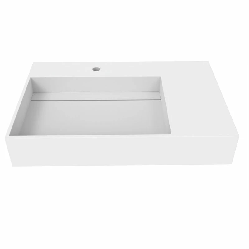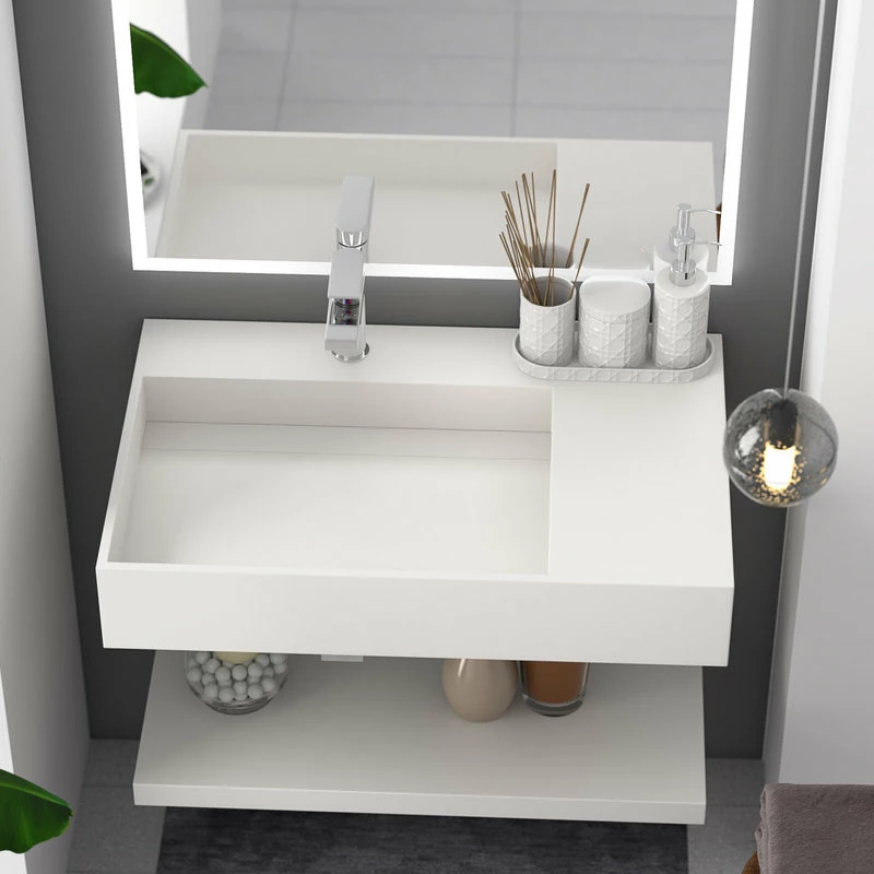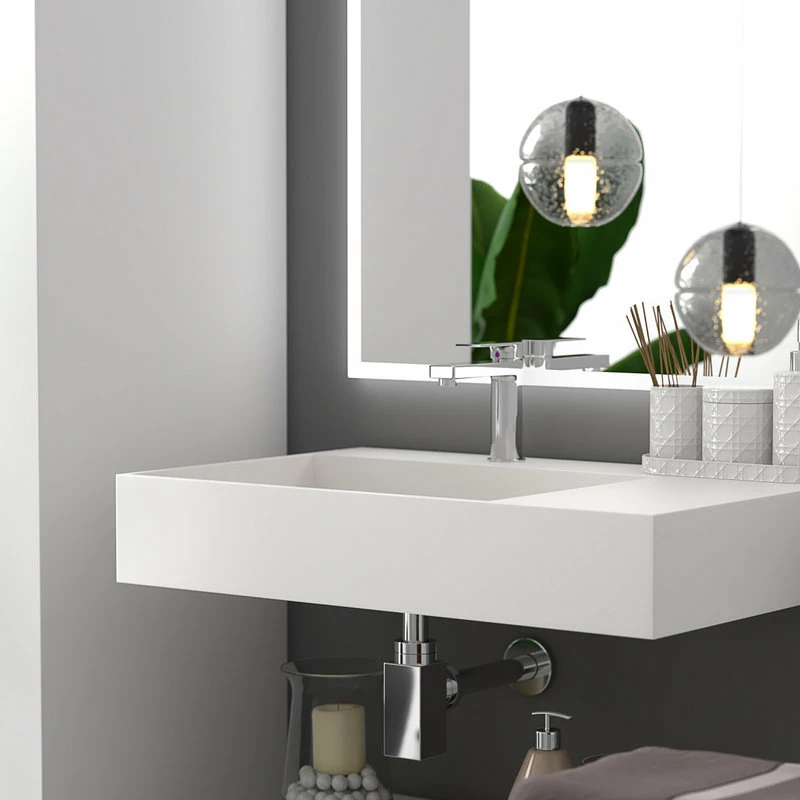 Embrace modern design and feel with the minimalist Juniper Wall-Mounted Sink. Simple yet sophisticated, this modern sink is designed to look as if it is floating in your bathroom. Its standard rectangular design with clean lines works well in many bathroom decor configurations and setups. Made with high-quality and durable solid surface material, this sink features a clean and consistent color throughout as well as durable construction to ensure lasting quality and appearance. The surface can be easily cleaned with most non-abrasive cleaning agents. A great accent for any washroom, bathroom, or power room.
