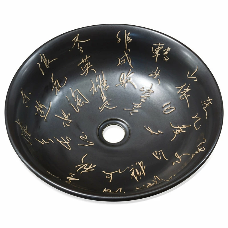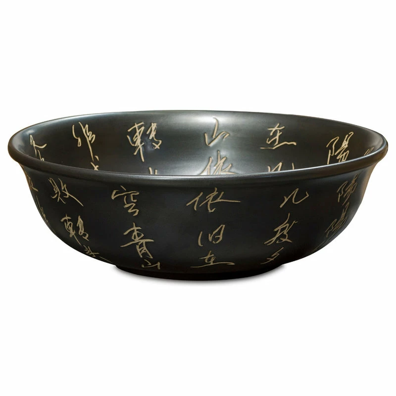 Chinese calligraphy is the soul of Chinese culture. Completely hand-crafted of fine black porcelain and hand-etched of an ancient Chinese poem in elegant calligraphy style. It is an eye catching piece when used as a center piece. Also can be used as a vessel sink bowl. Imported from China.