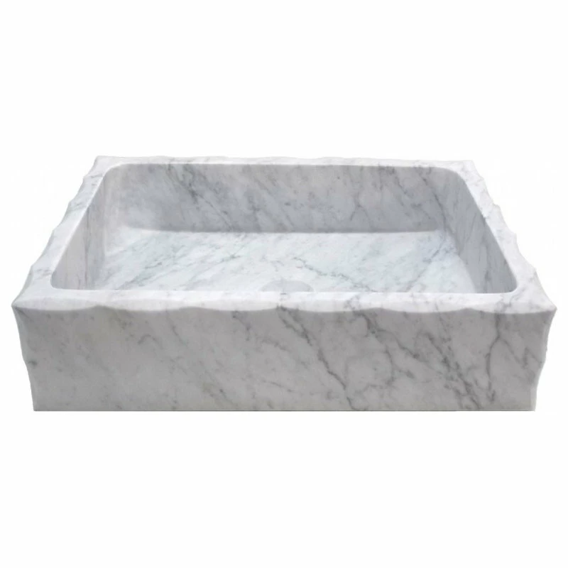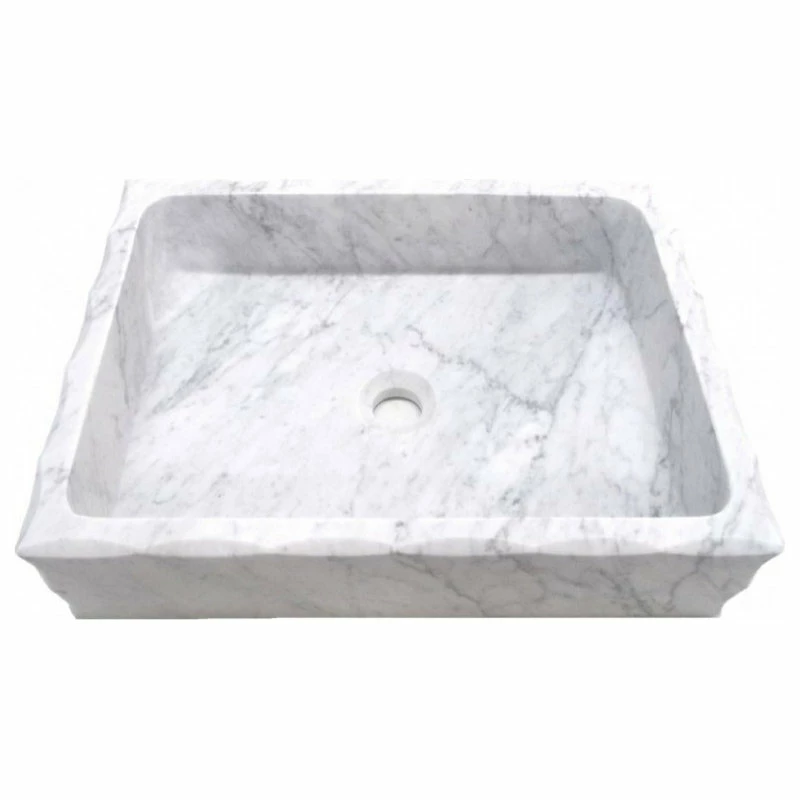 The Eden Bath Antique Rectangular Above Counter, Vessel Sink in Honed Carrara Marble is designed in a rectangular shape with scalloped edges to give the sink an antique and aged feel. This deep vessel sink from Eden Bath is in marble and is perfect for any bathroom. We recommend that you also purchase a drain with your stone sink in the same finish of your faucet.