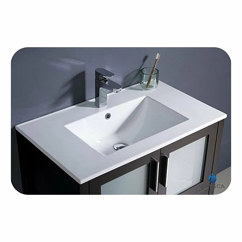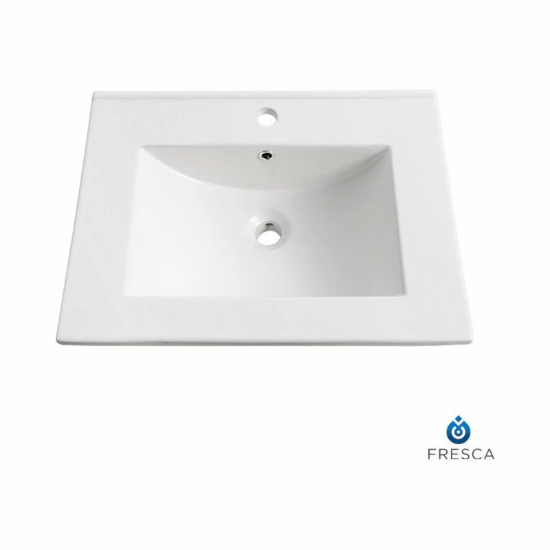 When it comes to sophisticated style, this modern white ceramic integrated sink and countertop is the complete package. Clean lines and a smooth profile make this the ideal sink and countertop combination for the classic, elegant bathroom. The Fresca Torino collection is available in a variety of sizes. This particular sink measures 24″ in width.