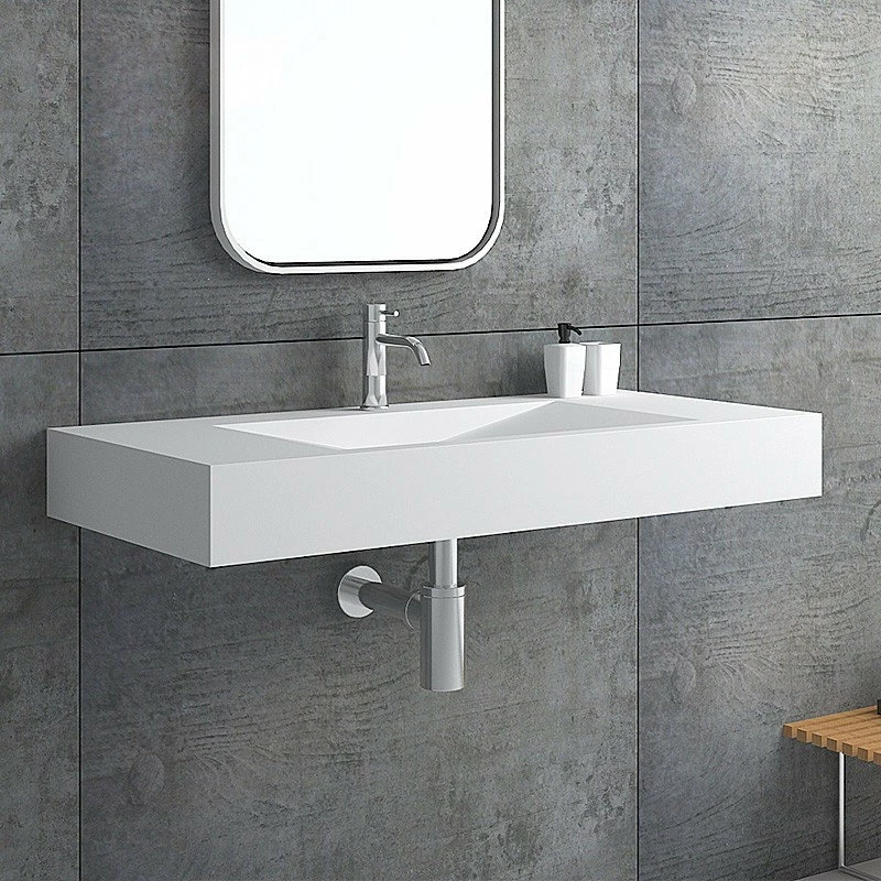 With geometric lines and contemporary styling, this innovative wall-mounted sink makes a striking focal point for your bathroom. The unique V-shaped design and rectangular shroud yield a sink that is brimming with modern class and taste. The sloped design and a narrow opening guide the water right to the drain, pretty and practical. The wall-hung installation allows for a custom height to meet your needs. Match it with a single hole faucet to bring your bathroom a distinctive and luxurious look.