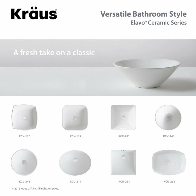Update your bathroom with the clean look of a KRAUS ceramic sink. The versatile design features a premium baked-on glaze for a high-gloss finish that’s easy to clean, and complements any decor from classic to contemporary.