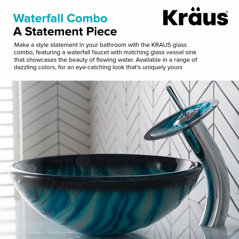 - Product: KRAUS Waterfall Bathroom Faucet with Matching Glass Disk