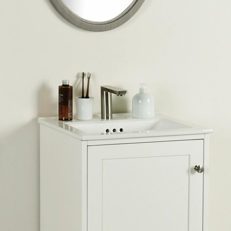 Sleek, clean, and classic. This was the inspiration for the design behind the Brockton 19 inch ceramic sinktop with single faucet hole. This sinktop with integrated bowl is the perfect addition to a small vanity or can be used as a self-rimming sink. The large, scooped bowl is trimmed with a small step separating the bowl and the countertop. You can rest easy against spills with the overflow holes in the sink and the lip at the back edge of the sinktop. All Maykke’s ceramics are made of high quality materials and are made to last in both light and high traffic bathrooms.