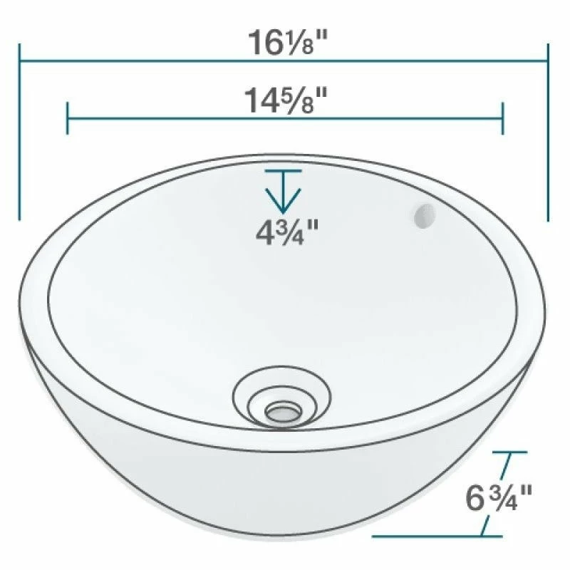 Durability and functionality define this beautiful sink, which presents itself cleanly and simply upon the vanity. As one of the smaller, circular vessel sinks in the porcelain line, it may be the perfect fit in a small bath and comes complete with an overflow. The additional vitreous china coating on this model creates an even more impervious and sanitary surface than standard porcelain. With an overall measurement of 16 1/8″ x 16 1/8″ x 6 3/4″, it will require a minimum-width cabinet of 18″. The 731-BN , single-handle, vessel faucet reaches a height of 12 1/4″ and features a classic trough-style spout with a 4″ reach. Its sleek lines gradually widen and contract to create a stunning design statement. The single handle has a flat top with an inverse curve below to mimic the spout design; and it easily sets just the right water flow and temperature. Ceramic disc cartridges assure long-term, dependable operation, and a beautiful brushed nickel finish completes its distinctive appearance. The faucet is constructed without lead and is compliant with NSF (National Sanitation Foundation) standards, the Safe Drinking Water Act, the cUPC (Uniform Plumbing Code of the United States and Canada), the ADA (American Disabilities Act) and carries the EPAs WaterSense label. Additionally, a spring-loaded, vessel pop-up drain (vpud) is included, which opens and closes with a simple press to its attractive brushed nickel cap.