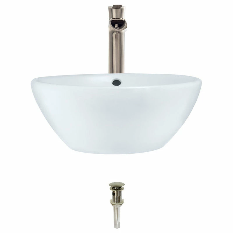 Promo โ MR Direct Sinks And Faucets Porcelain Vessel Sink, White, Vessel Faucet, Brushed Nickel ๐
