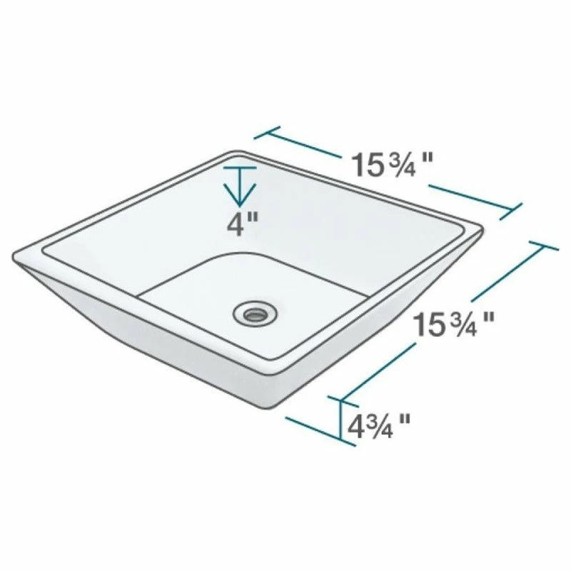 The V170-White porcelain vessel sink offers a unique, modern look for any bathroom. It is made from true vitreous China, which is triple glazed and triple fired to ensure your sink is durable and strong. Because this sink is a vessel, no mounting hardware is needed. The overall dimensions for the V170-White are 15-3/4 in. x 15-3/4 in. x 4-3/4 in. and an 18 in. minimum cabinet size is required. Vessel sinks require a special spring-loaded pop-up drain, which we offer in a variety of finishes to fit your decor. As always, our porcelain sinks are covered under a limited lifetime warranty for as long as you own the sink.