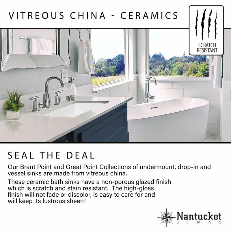 Nantucket Sinks UM-18×13-W – 18″ x 13″ Undermount Ceramic Rectangle Bathroom Sink in White. Easy and functional in an undermount design. Finished in a porcelain enamel glaze. This sink has an overflow and a 1.75″ drain diameter.