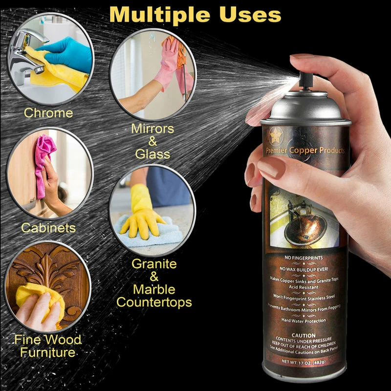 Protects copper sinks, tubs, accessories, marble, granite, countertops, cabinets, wrought iron, faucets, glass, chrome, appliances, leather and more…