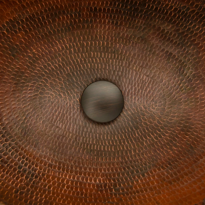 Bath Tub Vessel Hammered Copper Sink with ORB Single Handle Vessel Faucet, Matching Drain and Accessories: