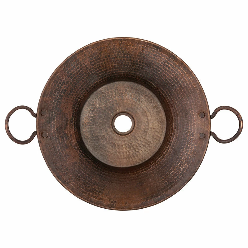 16″ Round Miners Pan Vessel Hammered Copper Sink Features: