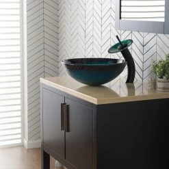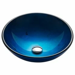 Deals โ๏ธ Kraus USA, Inc. Nature Series 17″ Round Blue Glass Vessel 19mm Bathroom Sink ๐