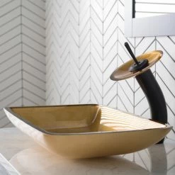 Hot Sale ๐ Kraus USA, Inc. Irruption Blue Rectangle Glass Vessel Bathroom Sink ๐ฅ