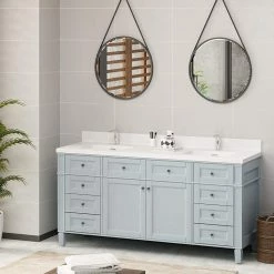 Cheap ๐ Castello USA Juniper Countertop Basin Sink, White, 60, Double Basin, No Faucet Hole ๐งจ