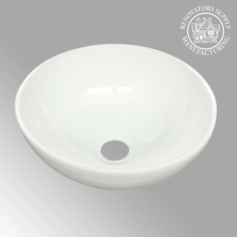 - The round vessel sink from Renovators Supply features a modern chic circular design and durable ceramic construction.