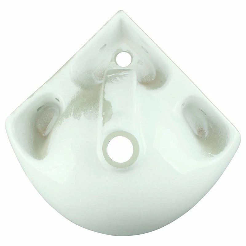 This is an ASME compliant 20.5 inches wide bathroom corner sink designed to enlighten your bathroom and fit in small corner spaces serving the purpose just right. Heavy-duty ceramic built, porcelain-coated scratch-resistant glazed design and wall mount installation – this floating bathroom sink is all set to fit right in with your home.