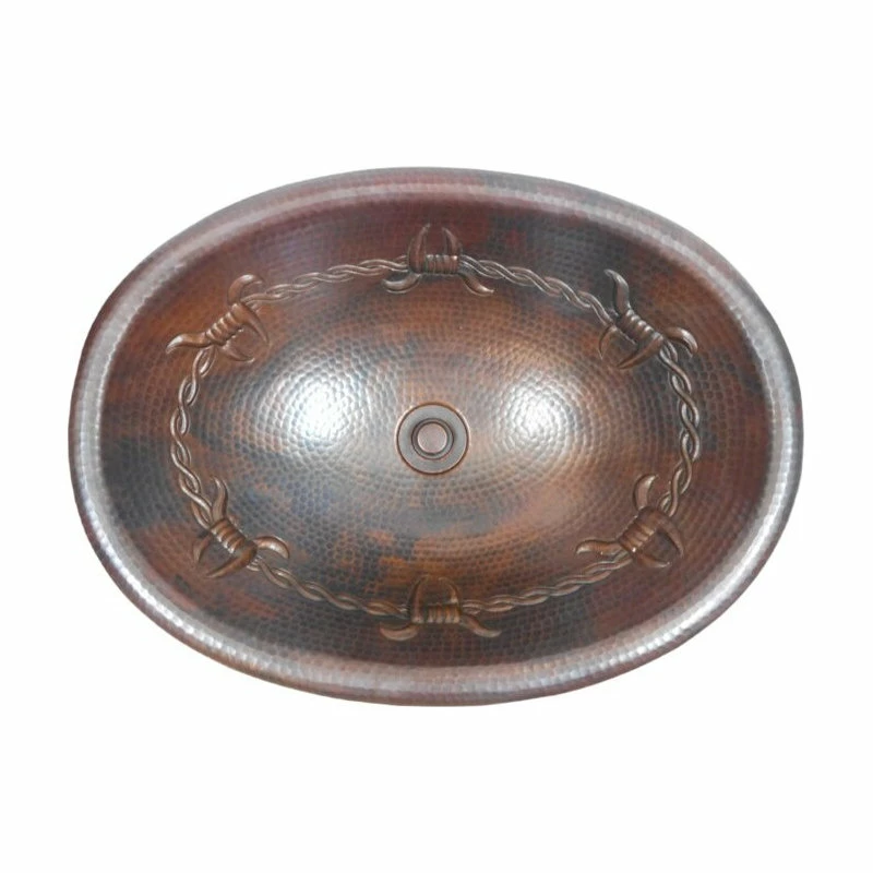 SimplyCopper 19″ x 14″ oval design, created of 18-gauge copper which is hand-hammered to provide a rustic antiqued look. This copper sink is installed as a Drop In.