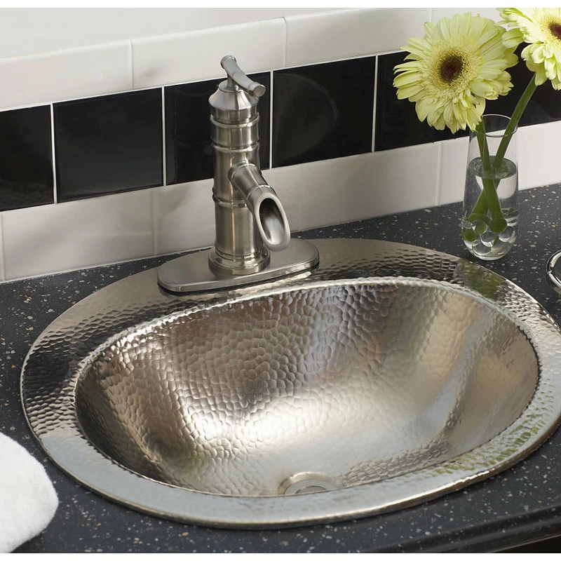 A shimmering hammered nickel finish and a clean oval shape are what make the Dalton from SINKOLOGY shine in any bathroom. It comes with an easy-to-install, drop-in construction and a maintenance-free finish, so it looks perfect in your vanity on day one and for years to come.