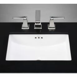 This stunning white porcelain rectangular undermount sink is a beautiful, timeless addition to your home. This bathroom undermount sink features a classic, elegant design that will enhance the look of any bathroom and will free up counter space.