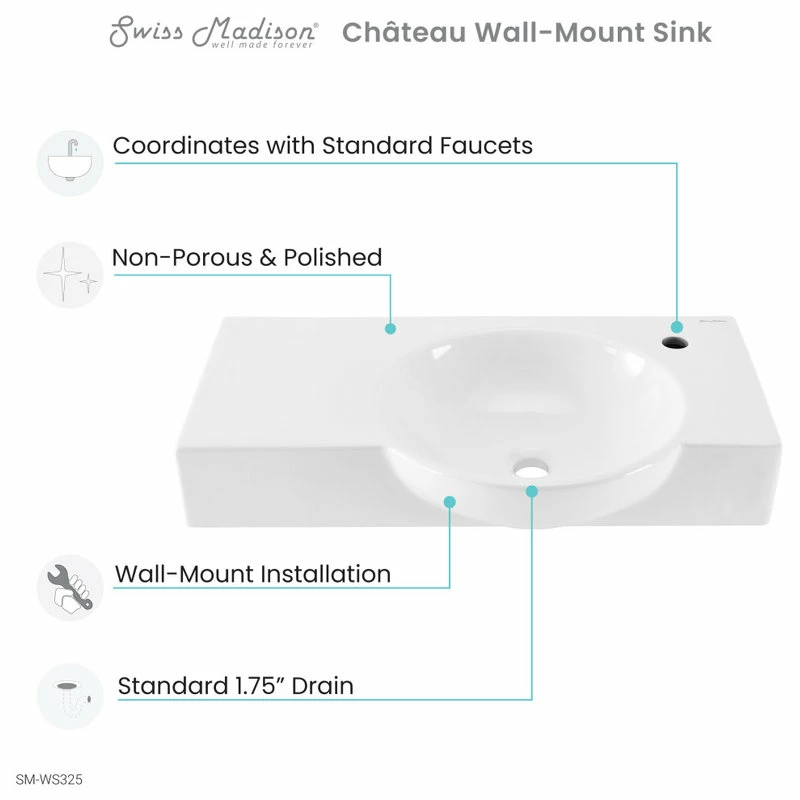 The Chateau Wall-Mounted Sink is a show-stopping piece designed to enhance any bathroom setting. This sink’s sleek yet compact silhouette is great for maximizing space. Pair the Chateau with any of our standard faucets and non-overflow pop-up drains to complete your bathroom.