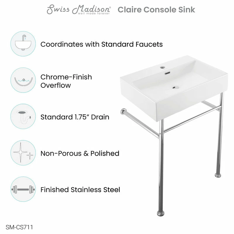 The Claire console sink ushers in your guests with a powerful and bright character. The widened washbasin offers increased ease of access. An open design makes the room appear more spacious and candid.