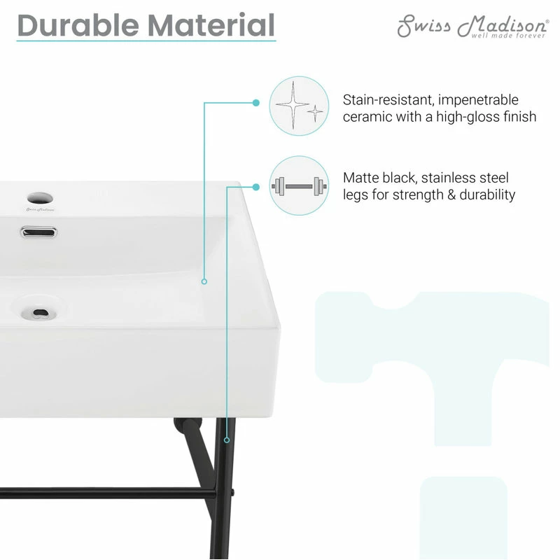 The Claire console sink ushers in your guests with a powerful and bright character. The widened washbasin offers increased ease of access. An open design makes the room appear more spacious and candid.