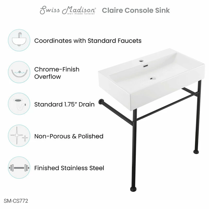 The Claire console sink ushers in your guests with a powerful and bright character. The widened washbasin offers increased ease of access. An open design makes the room appear more spacious and candid.