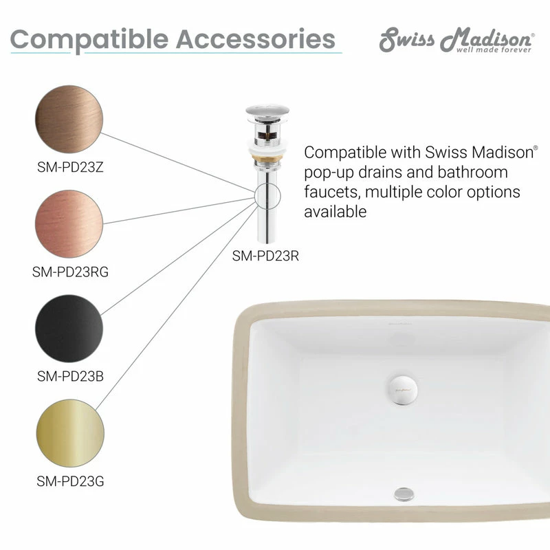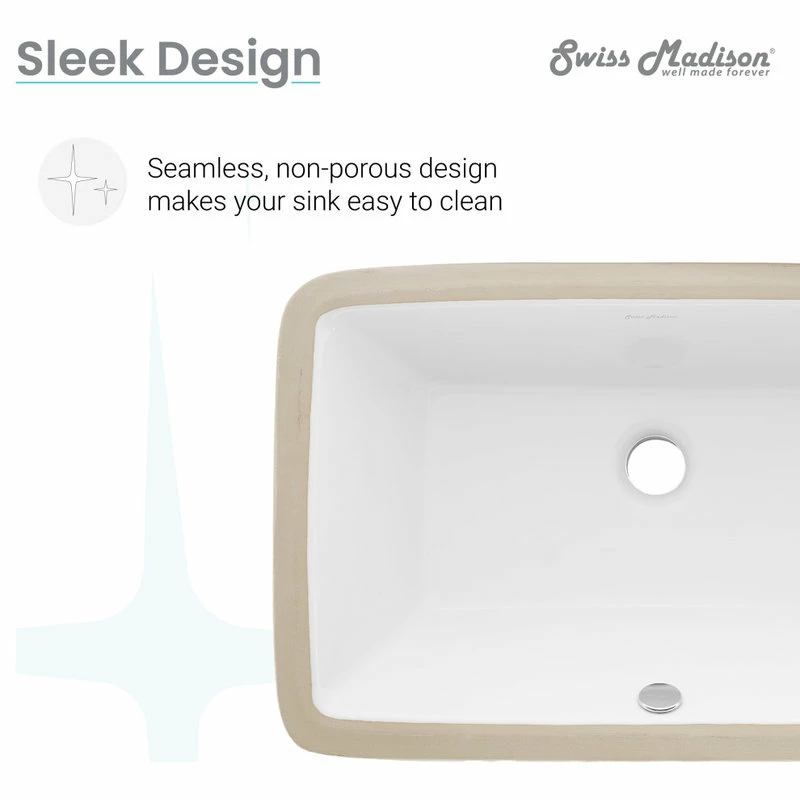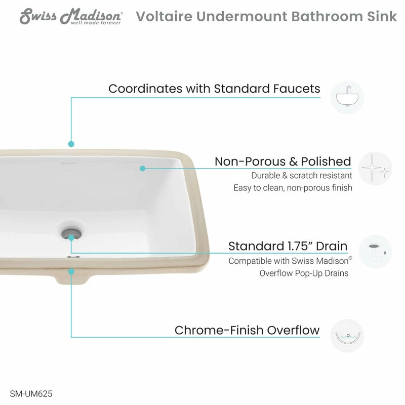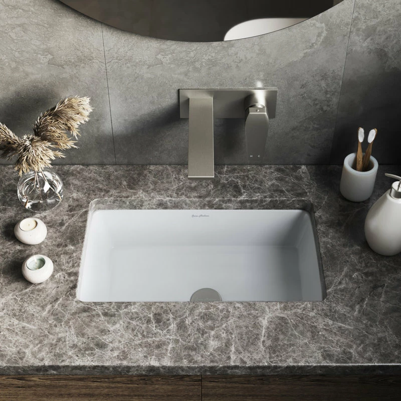 Sleek and contemporary, part of the Voltaire Collection, 21″ Rectangular Under-mount Bathroom Sink features a timeless design that suits both traditional and modern bathroom decors. The Volatire sink will go along with any counter-top you may choose. Designed from durable ceramic the Voltaire under-mount sink is a lasting selection for any setting.