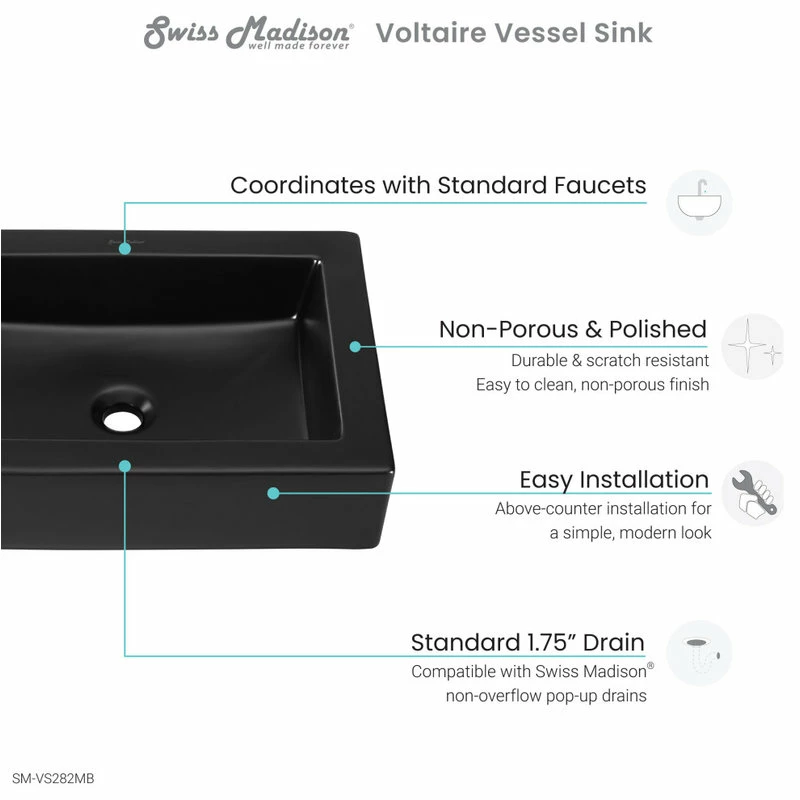 The Voltaire 22″ Rectangle Vessel Bathroom Sink is a stylish and modern addition to any bathroom setting. This unique rectangular vessel sink is durable, with a scratch-resistant non-porous finish, making it a high-quality long-lasting product. Additionally, this sink has an easy above-counter installation and was made for easy cleaning and maintenance.