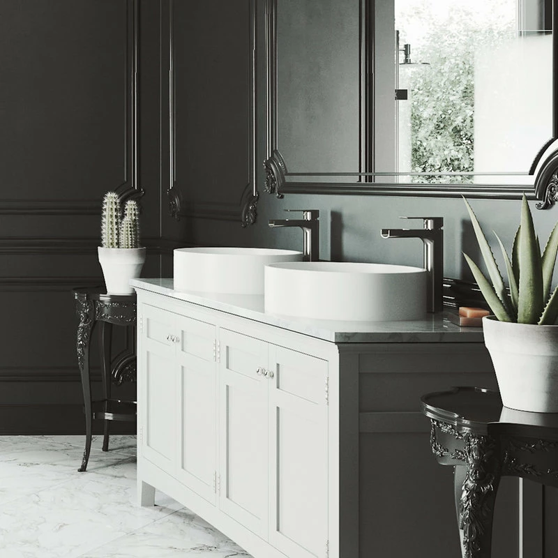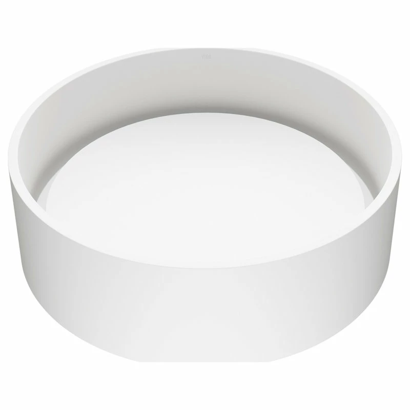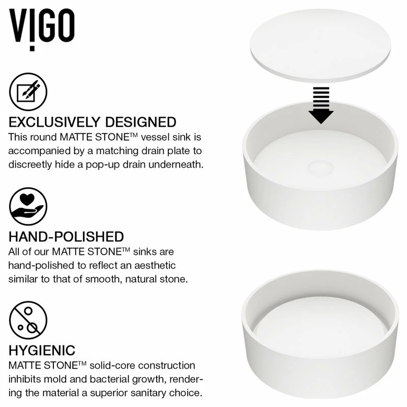 Make a statement with the VIGO Anvil Matte Stone Vessel Bathroom Sink. Made from solid core composite this hand-polished sink provides unparalleled strength and resistance to impact. VIGO’s proprietary Matte Stone sinks are scratch and fade resistant to make upkeep easy. The Anvil’s cylindrical shape and elevated interior plate offer a unique interpretation of the modern bathroom sink. With water cascading off its sides, the interior plate mimics an infinity pool. High-end in both quality and design, the VIGO Anvil will immediately update any bathroom.