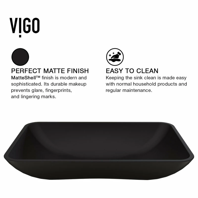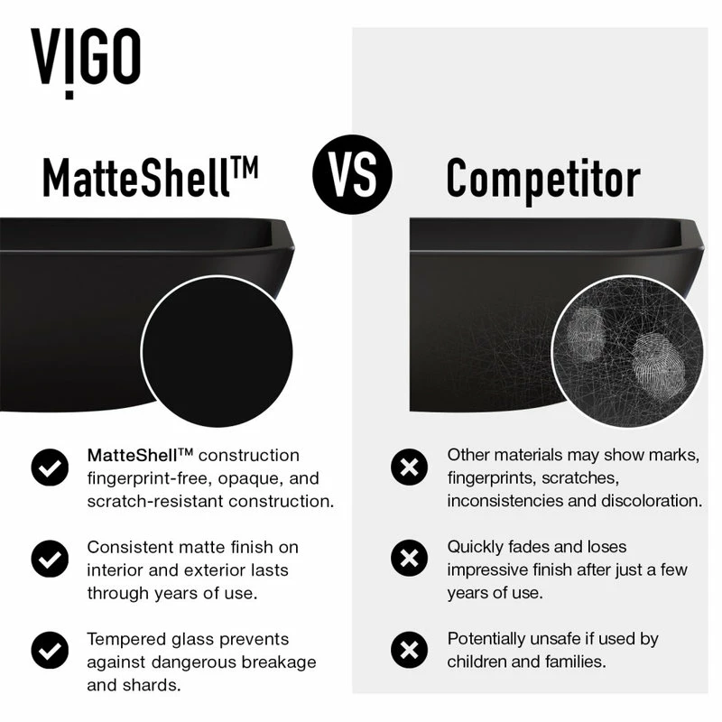 - RESILIENT CONSTRUCTION: VIGO’s Matte Shell is an upgrade on the traditional tempered glass for a safe, stylish experience