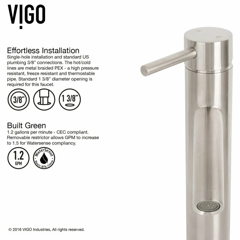 - QUALITY ASSURED WARRANTY: all VIGO bathroom sinks and faucet finishes feature an exceptional limited lifetime warranty;