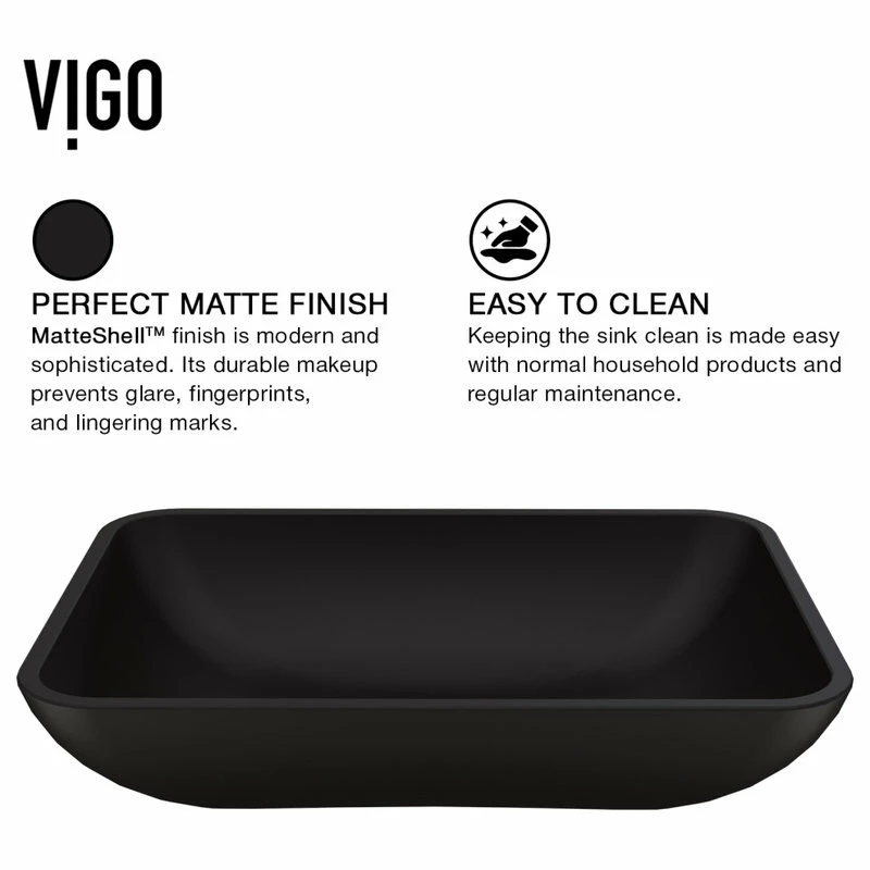 - MATTE SHELLβ’: VIGOβs proprietary Matte Shell is a reinforced tempered glass material that makes the sink for the bathroom more durable than traditional glass vessel sinks;