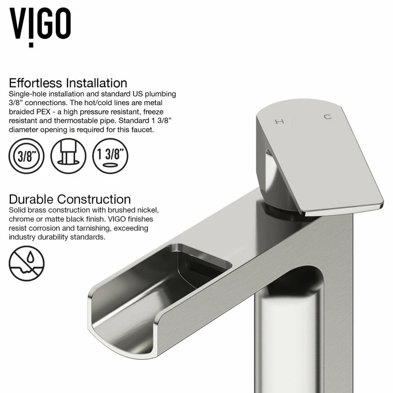 - VIGO finishes resist corrosion and tarnishing, exceeding industry durability standards